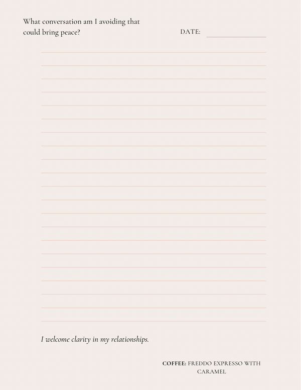 A 112-page guide featuring a 90-day intention-centered flow. Each day offers a thoughtful prompt, a grounding affirmation, and a gentle drink suggestion—coffee, tea, or matcha—to help you build a ritual of peace as you write.